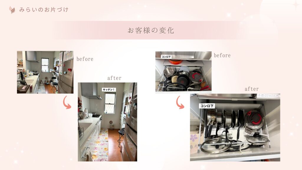 片づけ前と後では、見た目だけでなく、動きやすさや気持ちの軽さも大きく変わります。